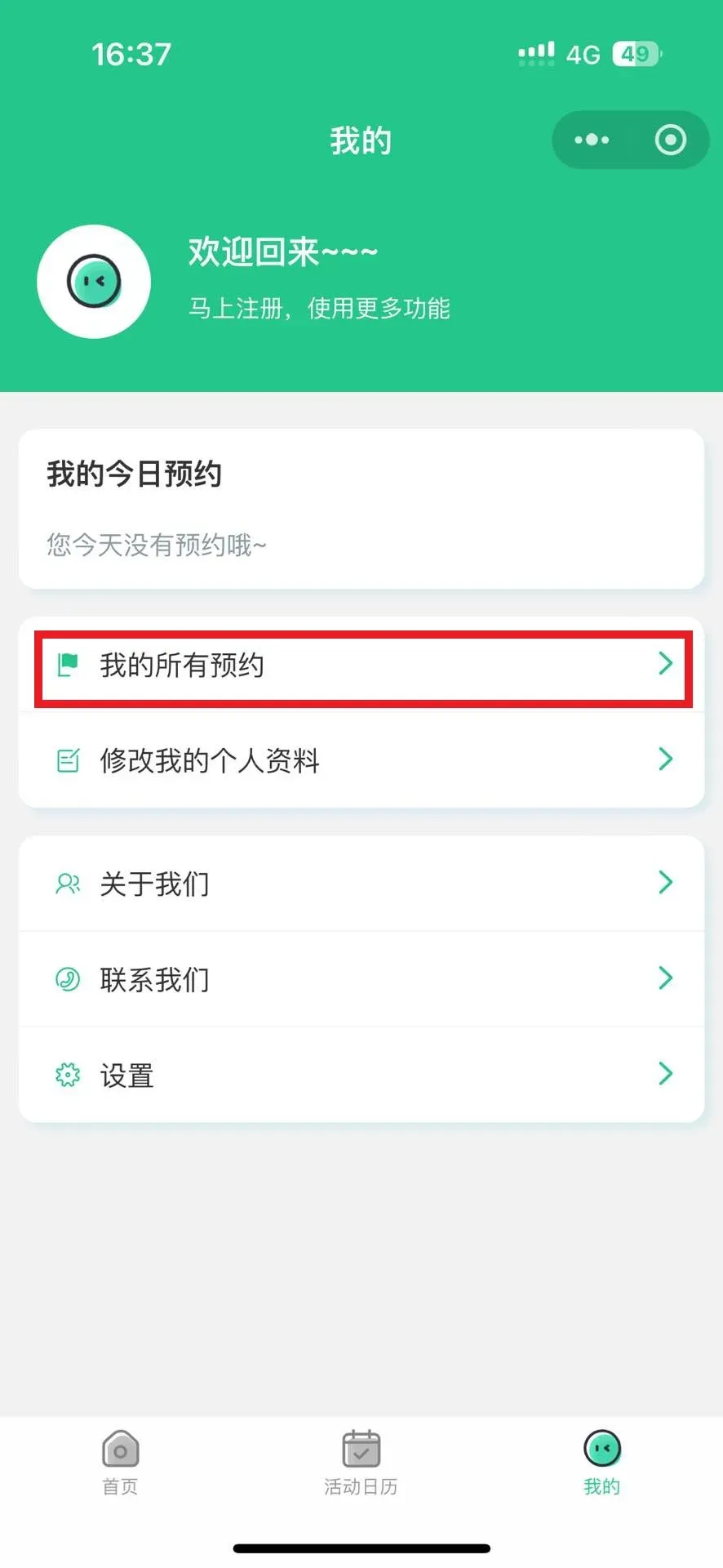 第一步:进入“我的——我的所有预约”栏目